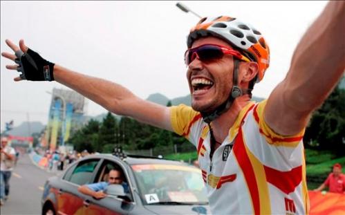 Tras cruzar la línea de meta, el ciclista español no ocultaba su alegría. (EFE)