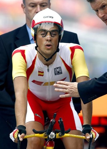 El ciclista español Alberto Contador, antes de su salida para competir en la contrarreloj individual de los Juegos Olímpicos de Pekín. El madrileño, campeón de la pasada edición del Giro de Italia, se ha quedado a sólo ocho segundos de la medalla de bronce. (EFE)