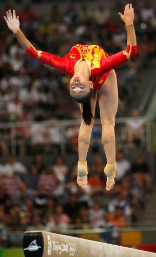 La gimnasta china Shanshan Li realiza un ejercicio en la barra de equilibrios durante la prueba femenina de gimnasia artística por equipos de los Juegos Olímpicos. China ha logrado la medalla de oro, por delante de Estados Unidos y Rumanía. (EFE)