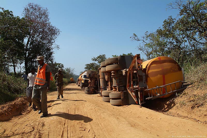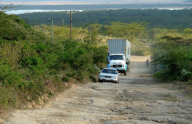 Carretera cerca de la localidad de Kasambara, no muy lejos de la carretera principal que une Nairobi con el lago Victoria. Los constructores aprovecharon el sustrato rocoso para que sirviese como pavimento. No apto para ciclistas y coches bajos.