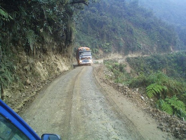 La carretera de la muerte, en los Andes bolivianos, es una de las más famosas del mundo... y de las peores. Va de La Paz a Coroico y es la carretera más peligrosa que existe. Unas 200 personas se dejan la vida en ella cada año, por lo general despeñándose por los barrancos de hasta 800 metros en vertical que se abren a sus lados.