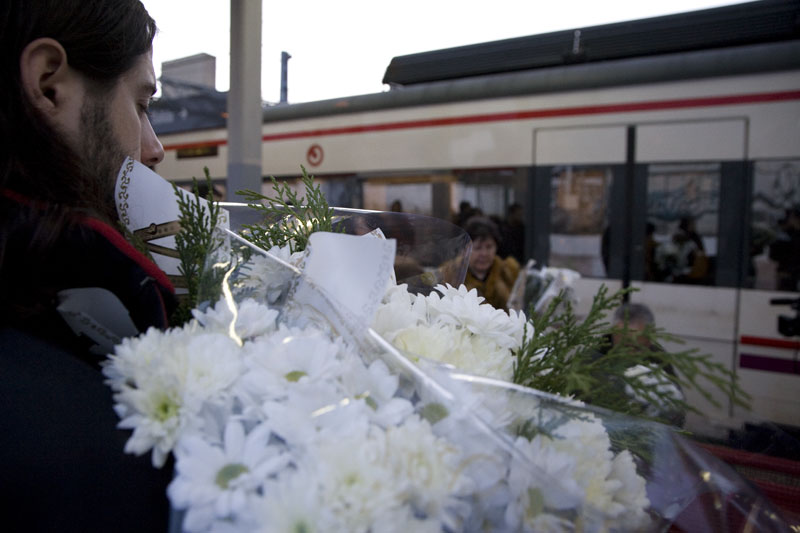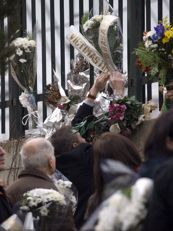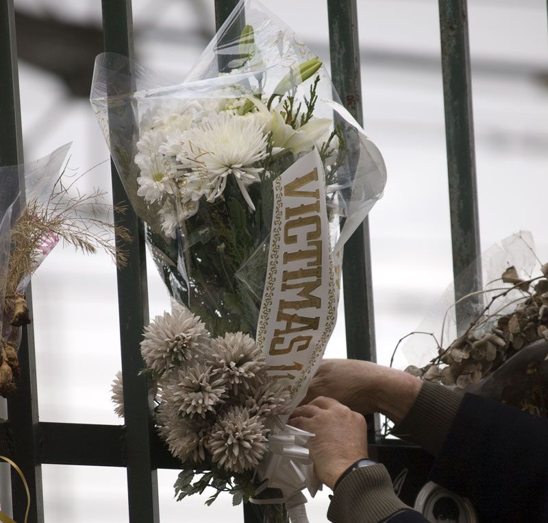 Las velas y las flores quedarán ahí todo el día en memoria de los que fueron asesinados el 11 de marzo de 2004
