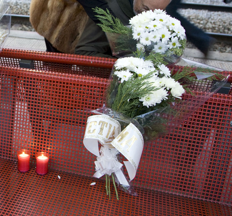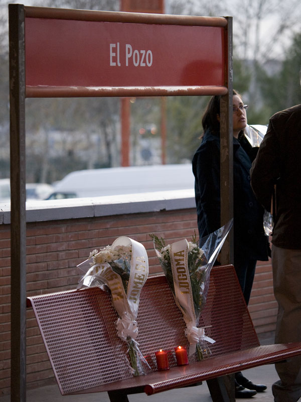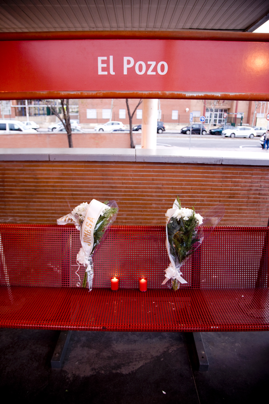 Este banco de la estación de El Pozo es ya un pequeño altar frente al cual se puede (y de debe) hacer una reflexión sobre la tragedia y sobre los que perdieron la vida en ella.