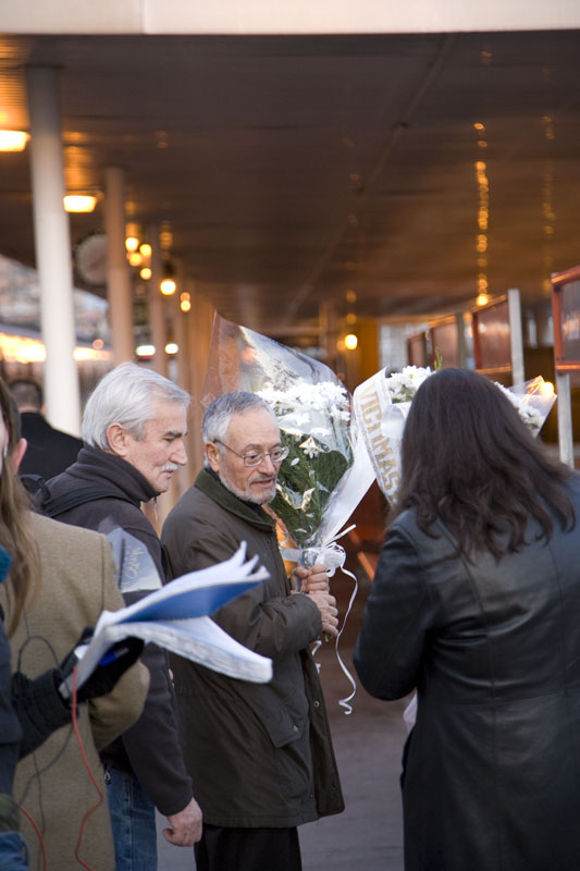 Una víctima del 11-M sale de la estación de Atocha con su ramo en la mano. Se dirige a la puerta del monumento a las víctimas del atentado, cuya entrada se encuentra cerca de esa salida.