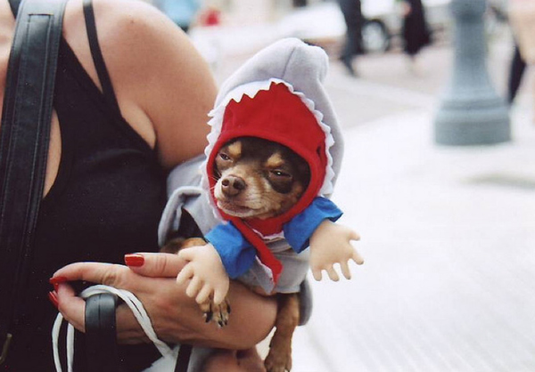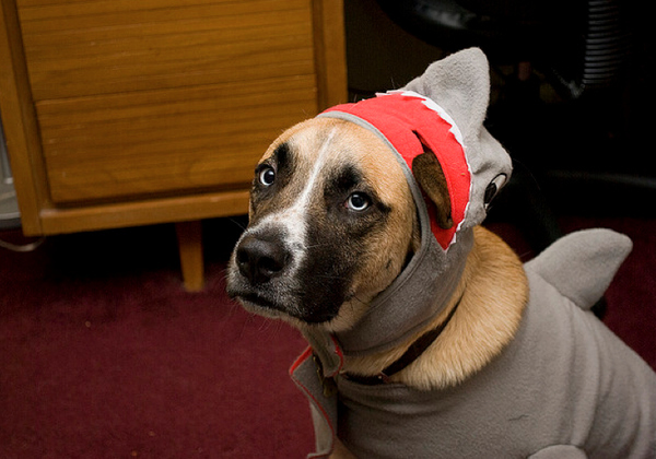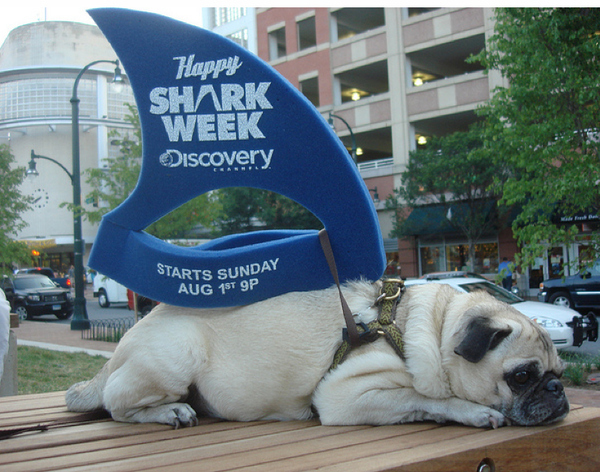 Con motivo del estreno del documental "Happy Shark Week" muchos norteamericanos han disfrazado a sus mascotas preferidas de tiburón.