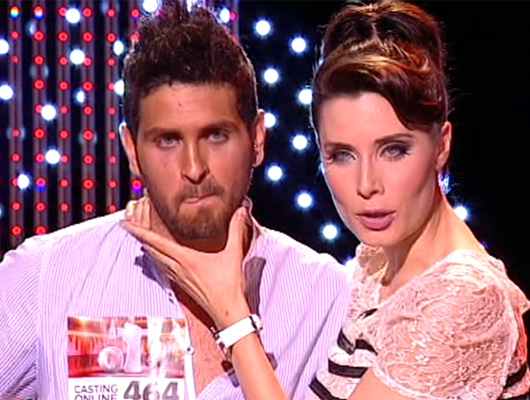 La presentadora, con uno de los concursantes en la gala cuatro.