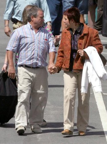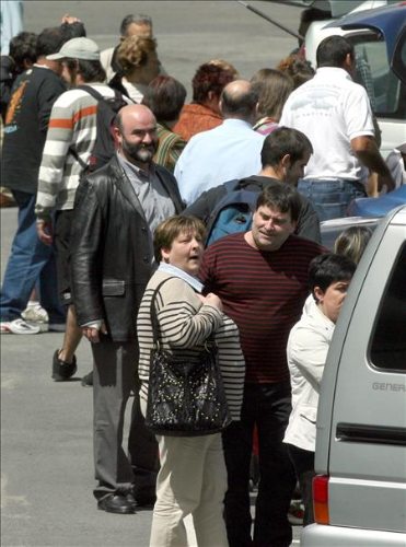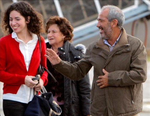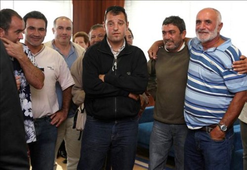 Los cinco marineros vascos del "Playa de Bakio", fueron recibidos por sus familiares a su llegada al aeropuerto vizcaíno de Loiu, en Vizcaya. (EFE)