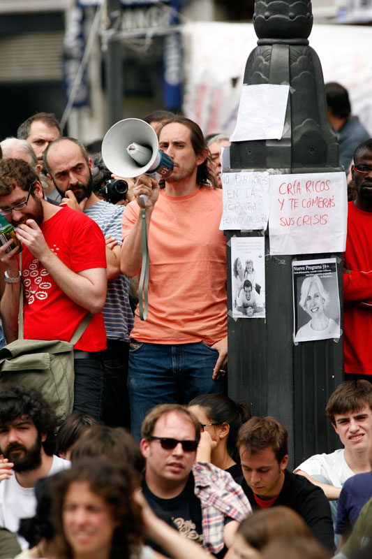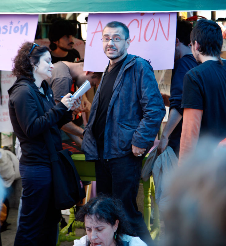 El profesor de la facultad de Políticas de la UCM y conocido militante de extrema izquierda Juan Carlos Monedero, de visita en el campamento.