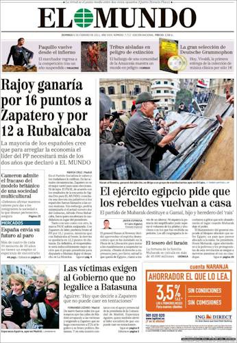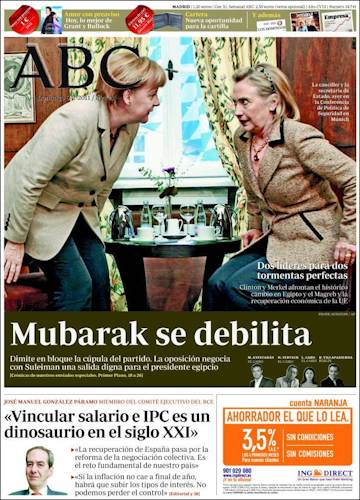 ABC no trata el tema en su portada y dedica su espacio a la crisis egipcia y la reunión entre Merkel y Clinton.