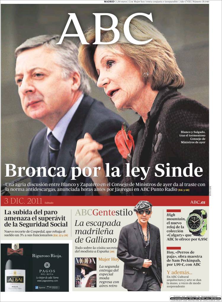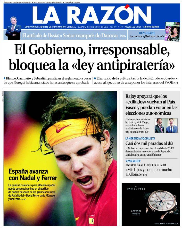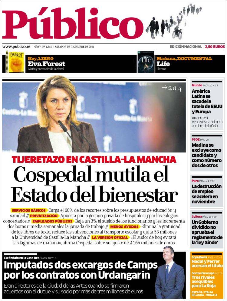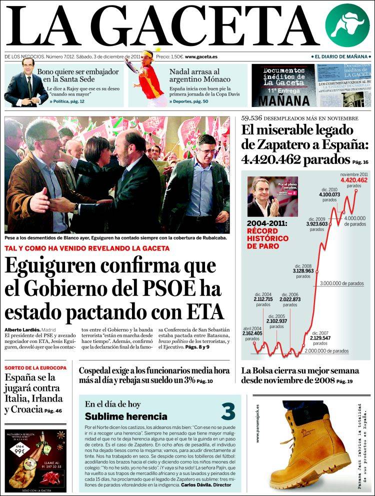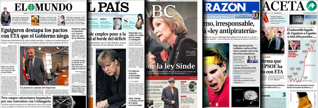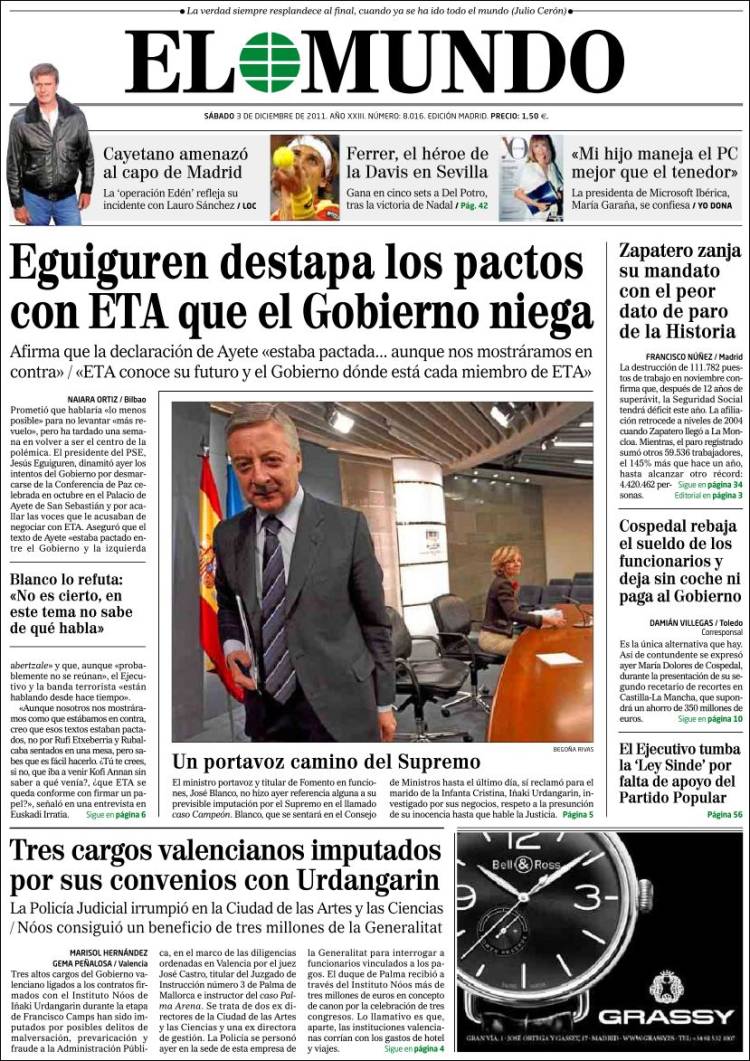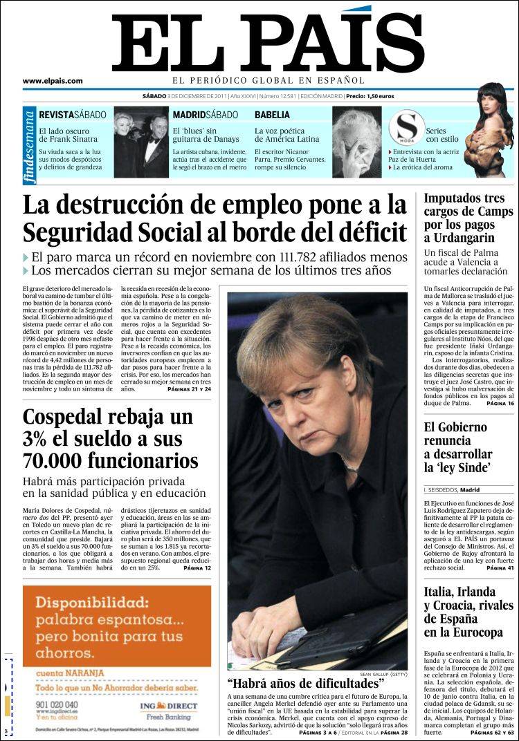 Las portadas de los principales diarios nacionales de este sábado 3 de diciembre 2011.