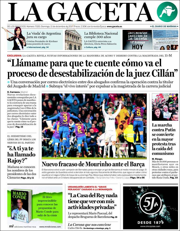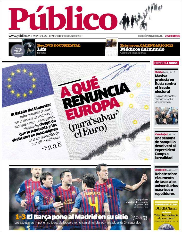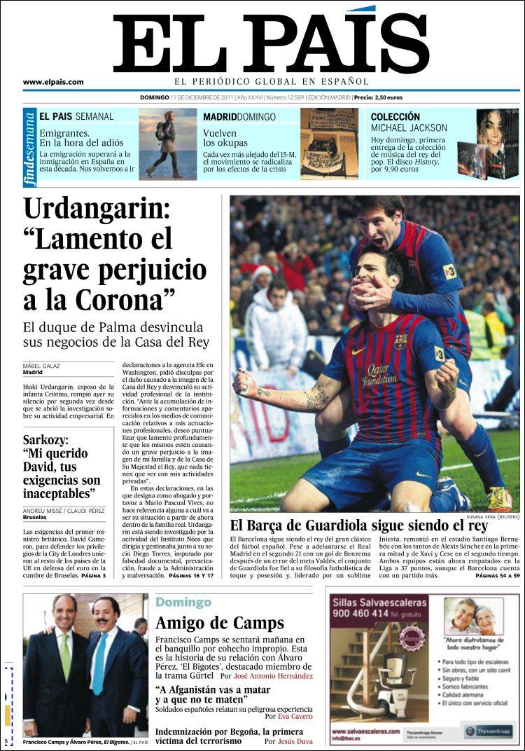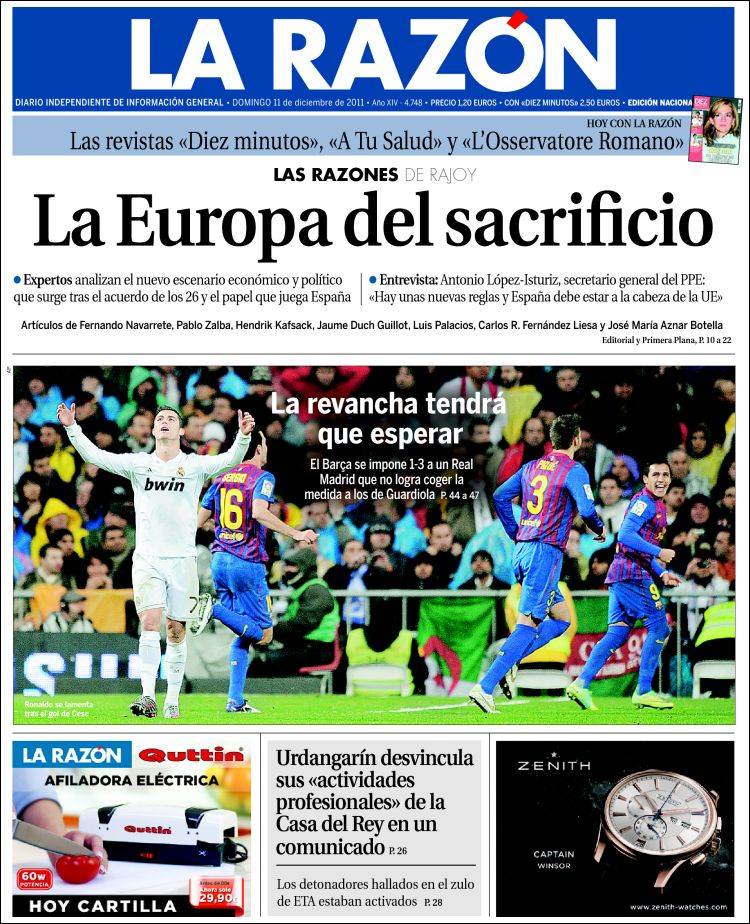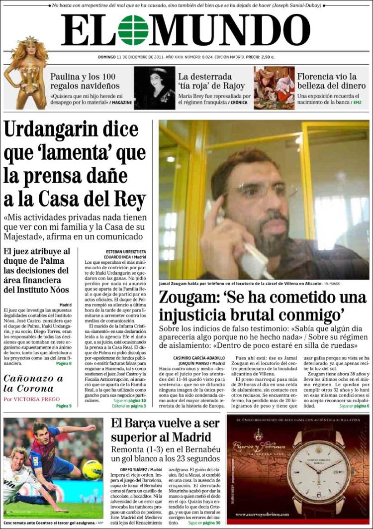Portadas de los diarios nacionales de este domingo 11 de diciembre de 2011