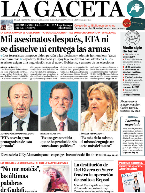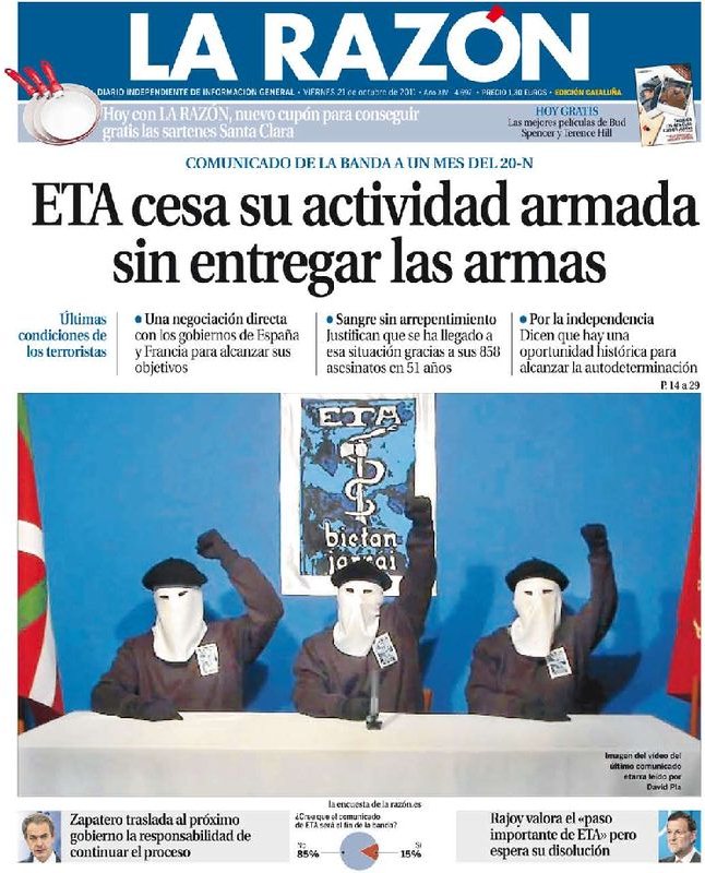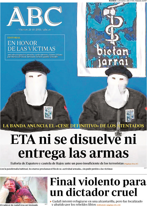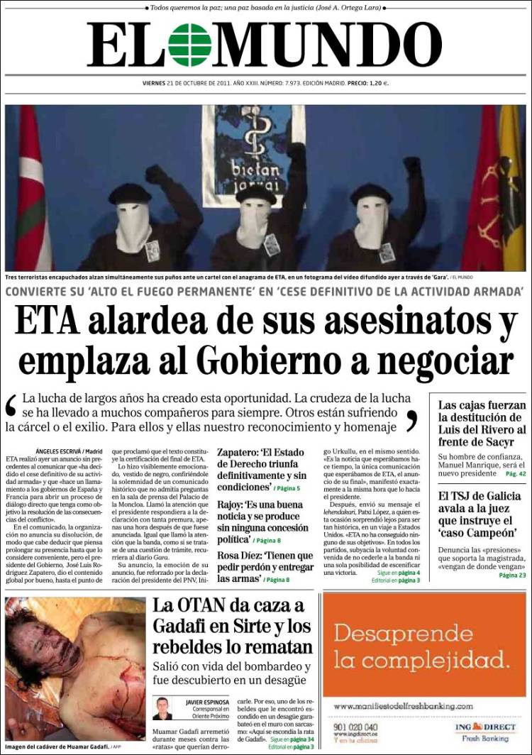 'El Mundo': "ETA alardea de sus asesinatos y emplaza al Gobierno a negociar".