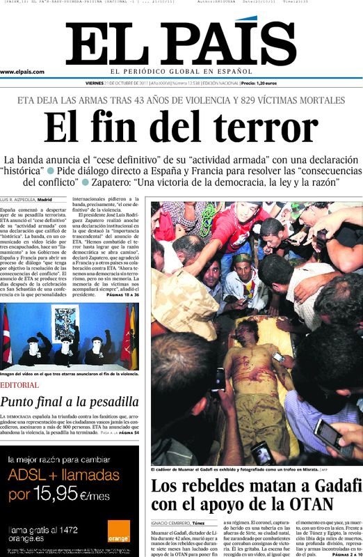 El diario de PRISA da por sentado que el anuncio supone el fin de ETA.