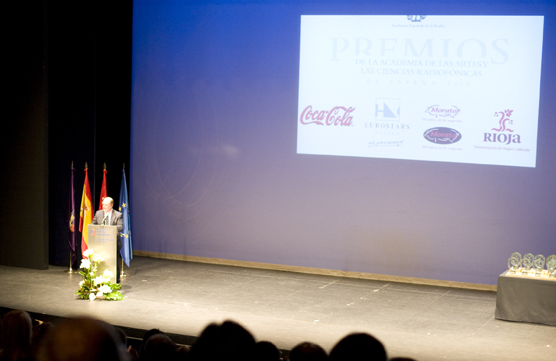 La Academia de la Radio al completo con su presidente al frente se presentan al comenzar la gala.