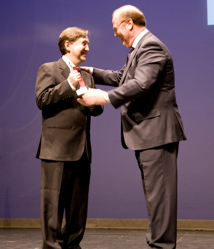 Federico recoge el premio de manos de Gonzalo Aguado, alcalde de Pozuelo de Alarcón.