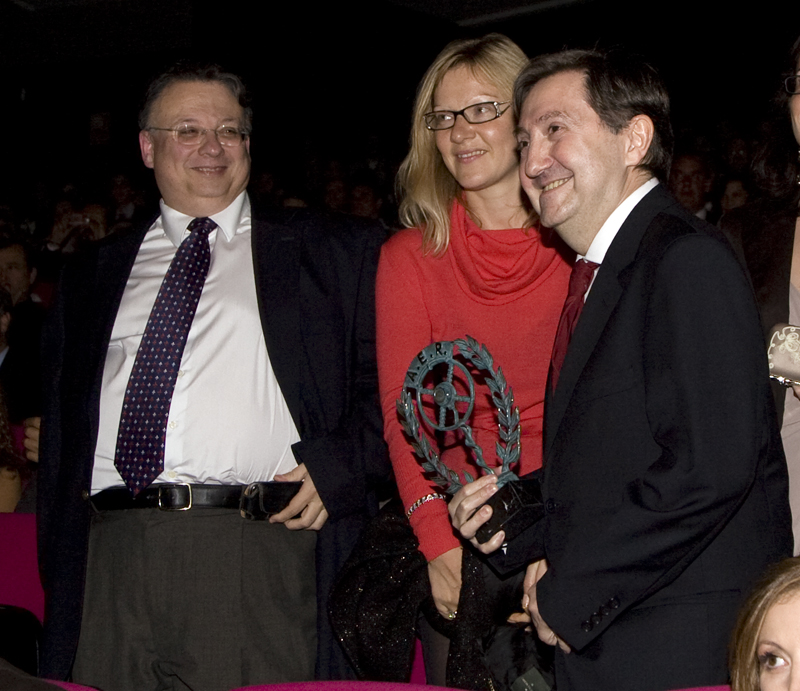 José María García, también premiado, a su llegada al Mira Teatro de Pozuelo de Alarcón.