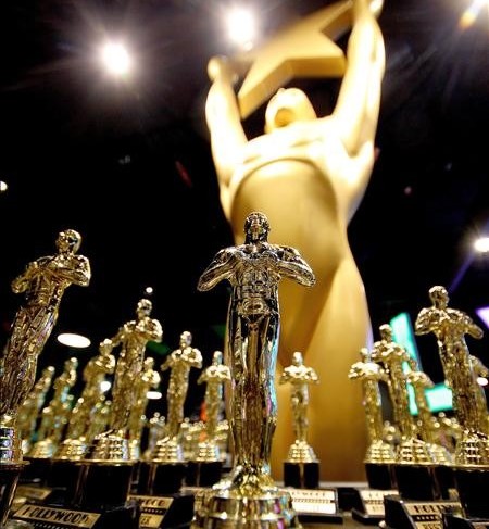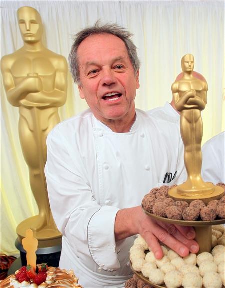 El chef austríaco Wolfgang Puck enseña alguno de los platos que se servirán tras la gala. EFE