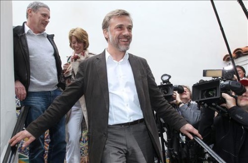 El actor austríaco Christoph Waltz sonríe para las cámaras durante una recepción del Óscar en Villa Aurora de Los Ángeles, California (EEUU).