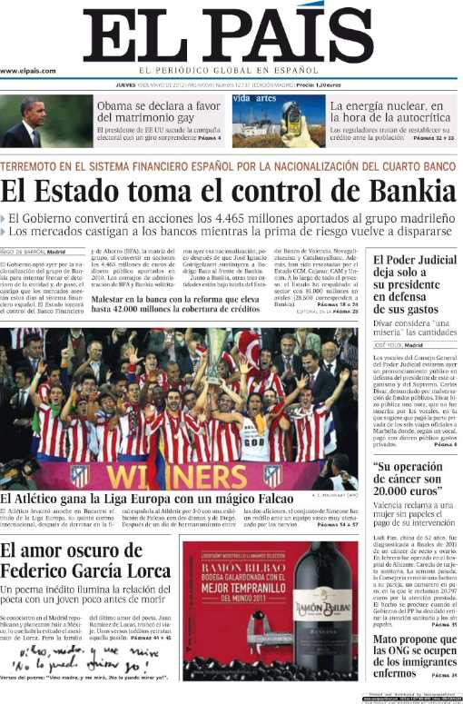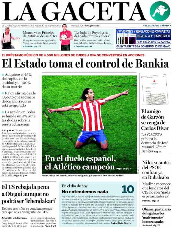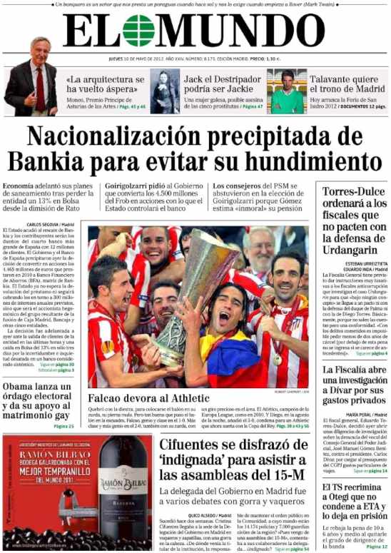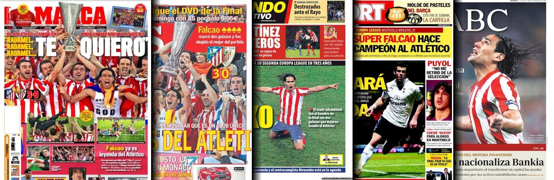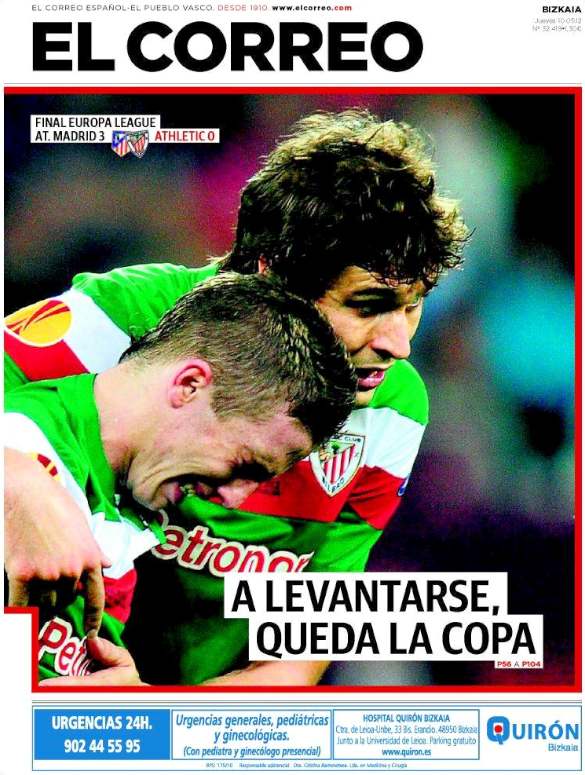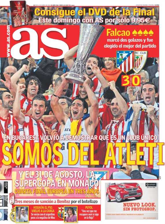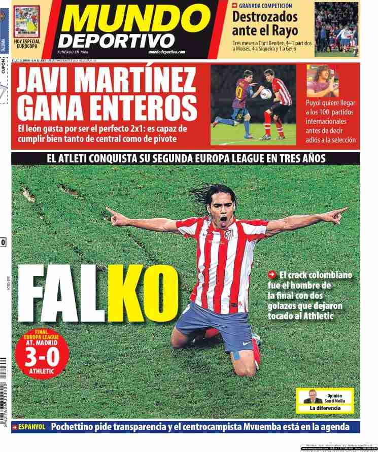 Los diarios deportivos y de información general destacan en sus portadas el título de la Liga Europa conquistado por el Atlético de Madrid tras derrotar al Athletic de Bilbao en la final española de Bucarest.