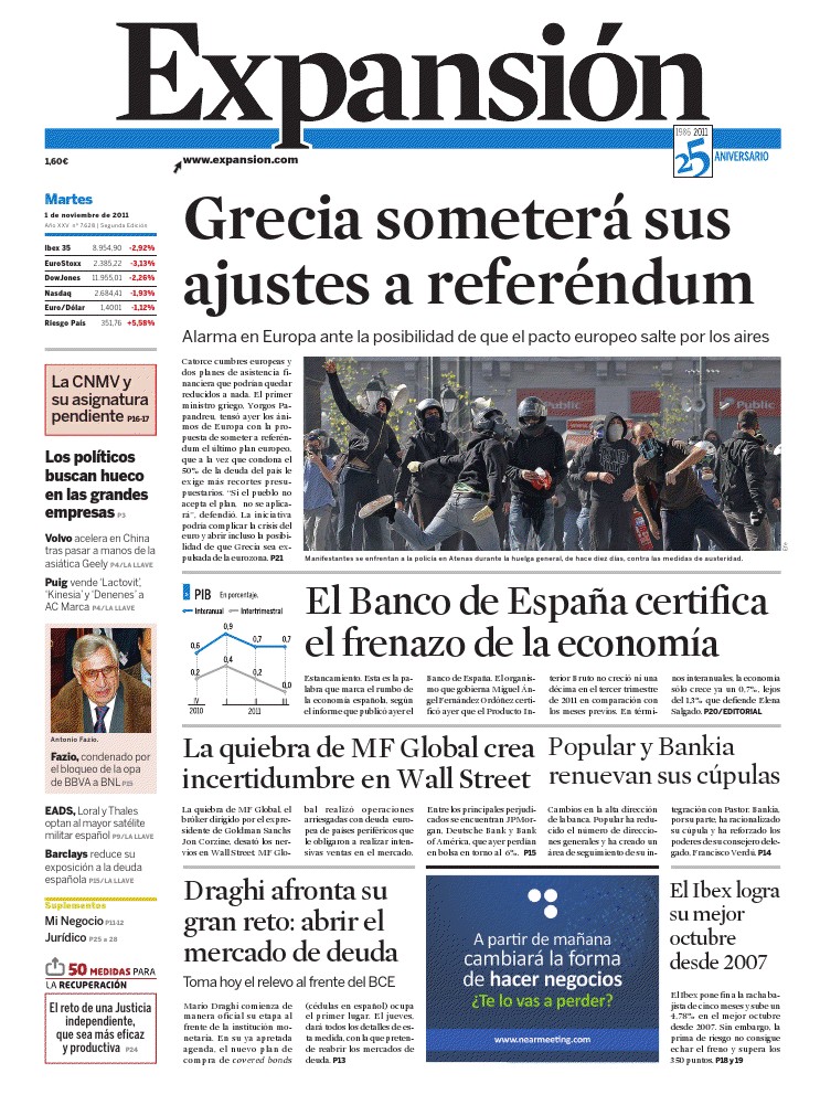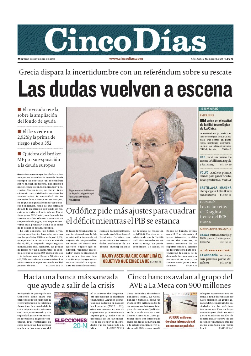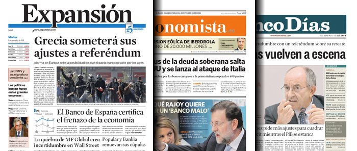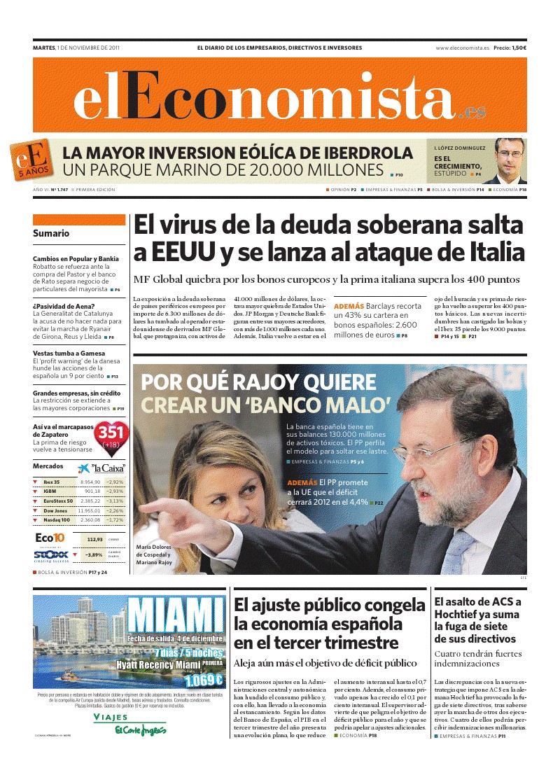 Portadas de la prensa económica de este martes 1 de noviembre de 2011.
