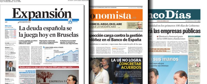 Portadas de la prensa económica de este miércoles 26 de octubre de 2011