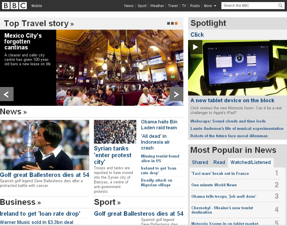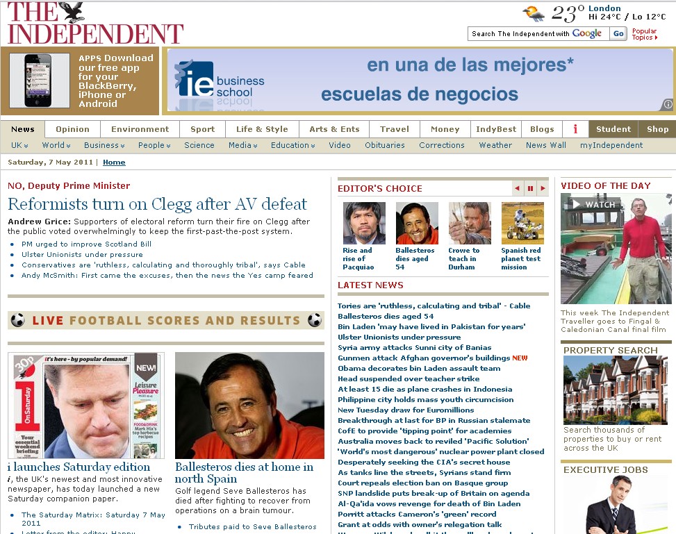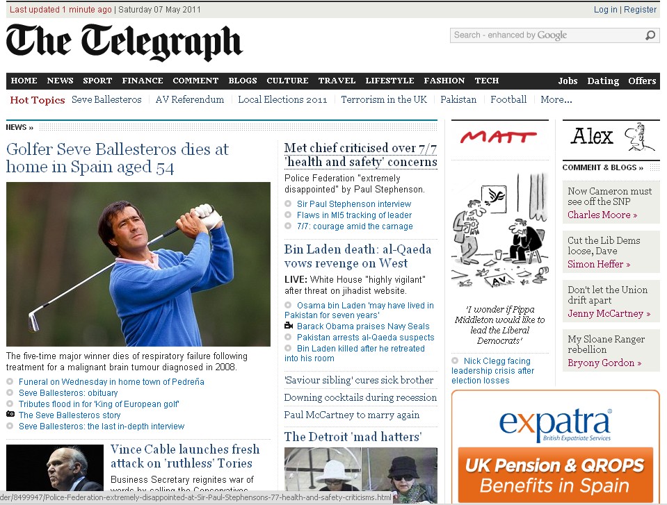 En la BBC era prácticamente la noticia más dstacada en la portada.