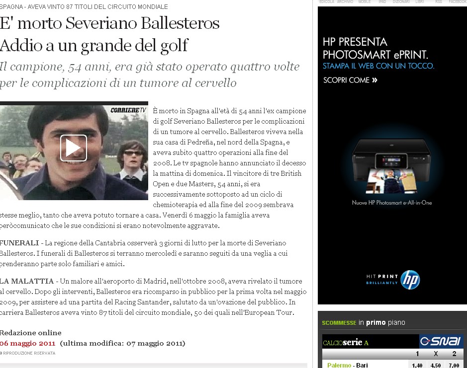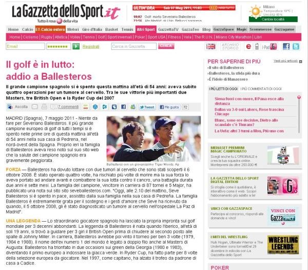 En Italia, donde el golf no tiene tanta tradición, era difícil encontrar la noticia en portada. Sin embargo, los homenajes estaban en todos los periódicos.