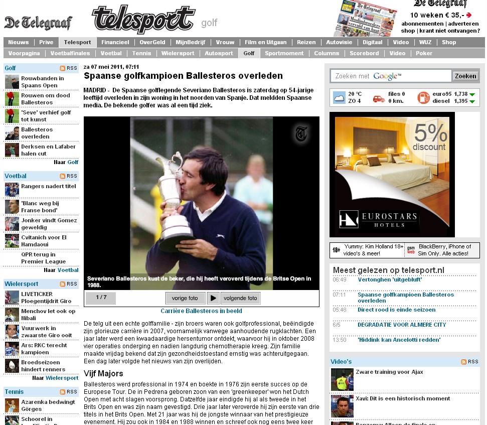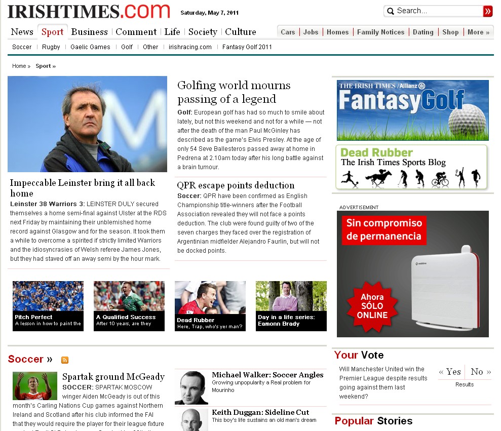 En Irlanda, Ballesteros es la noticia deportiva más importante del día.