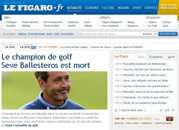Le Figaro también destacaba la muerte del francés, el "campeón del golf".