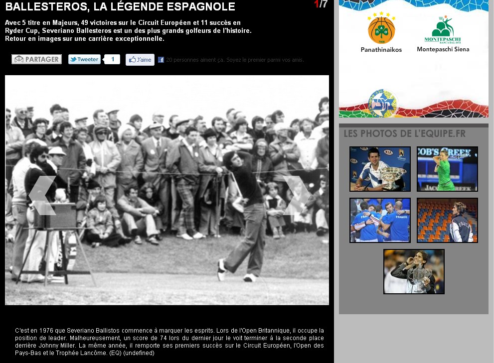 En el país vecino tildan de leyenda española a Ballesteros, destacando sus mejores momentos.