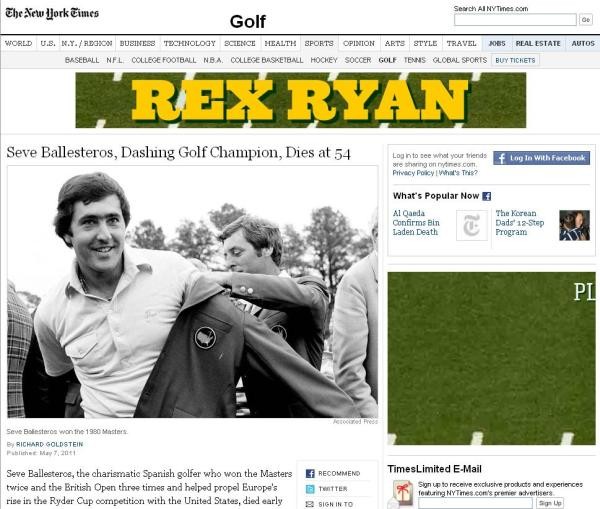'Adiós a un grande del golf' rezaba Il Corriere dello Sport.