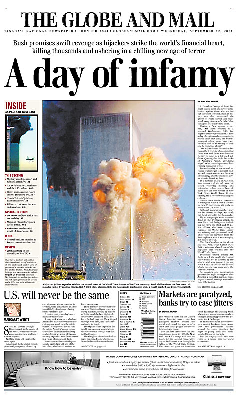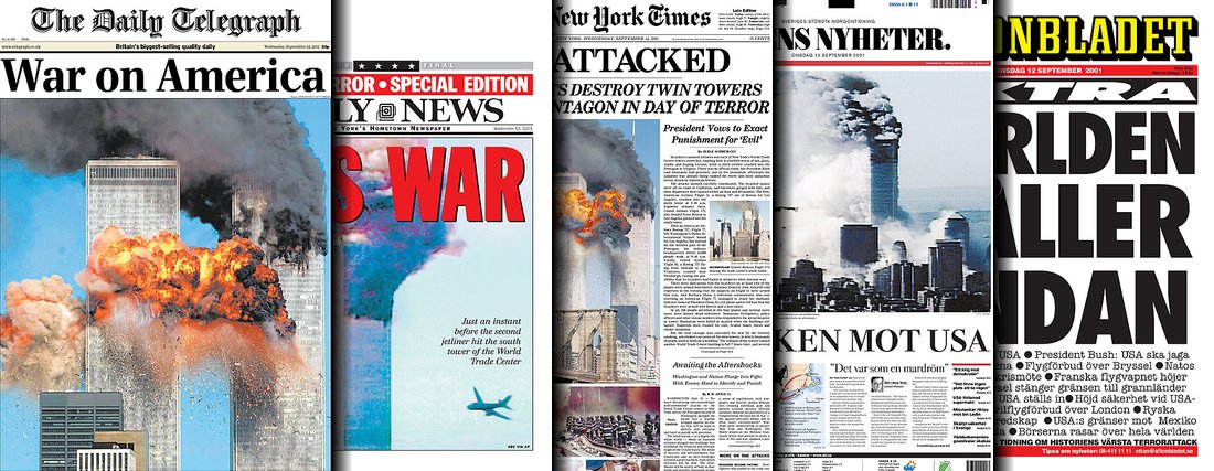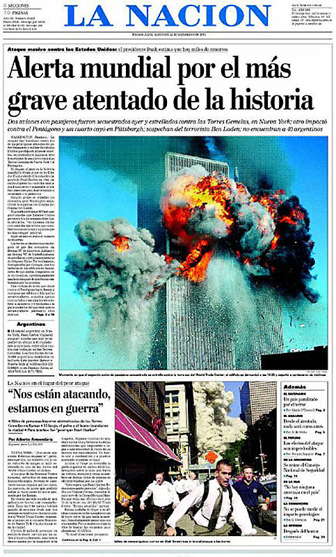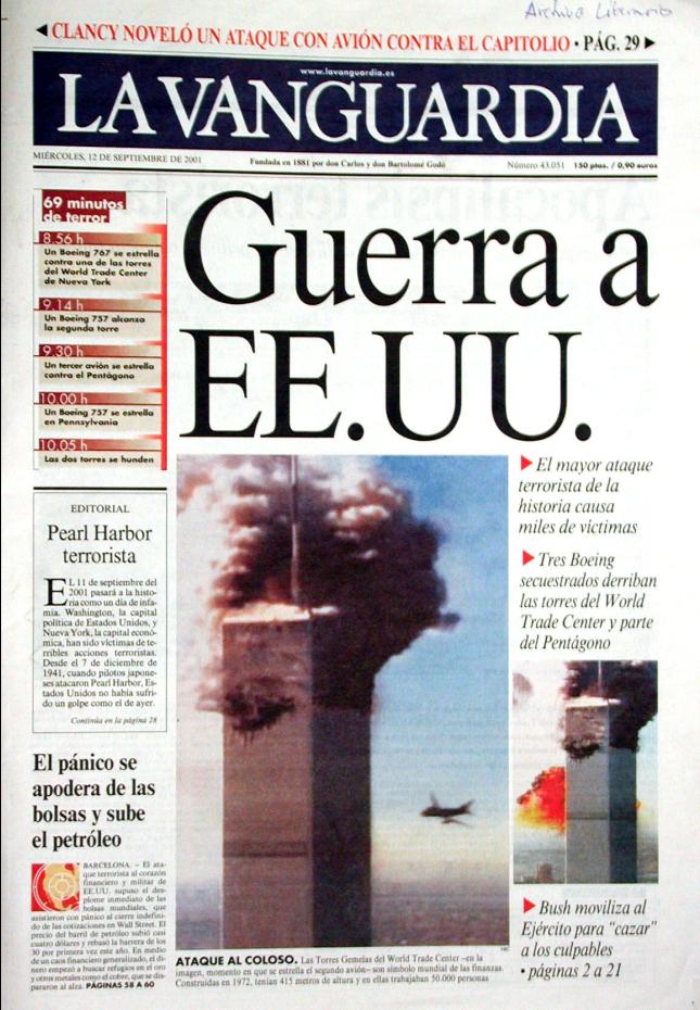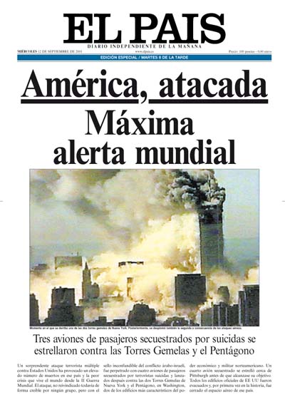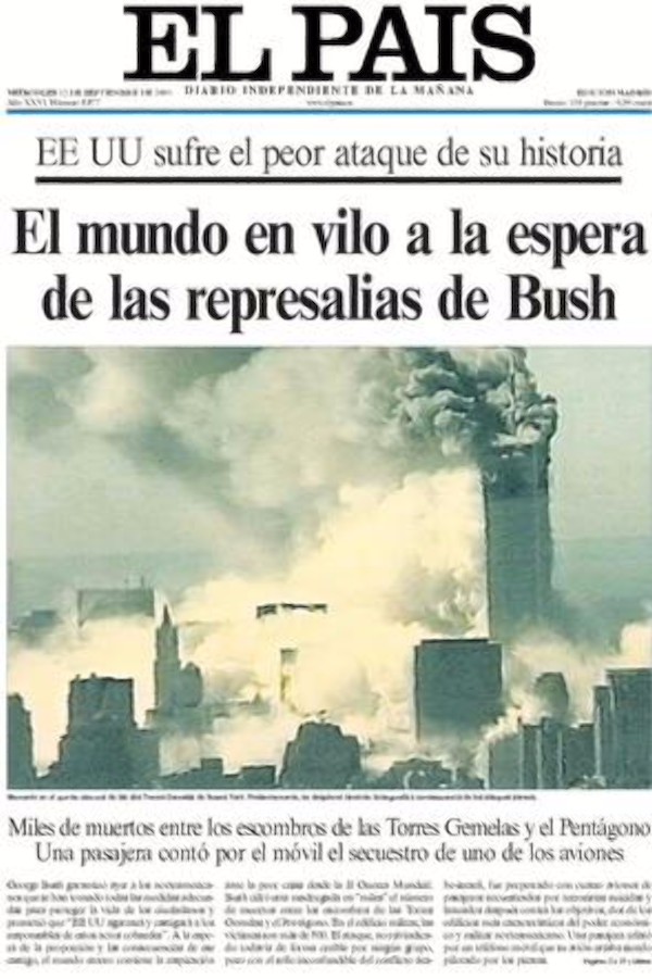 La prensa mundial quedó sobrecogida tras los atentados del 11-S. Medios de todo el mundo hablaban de guerra mientras mostraban fotografías de los ataques.