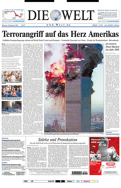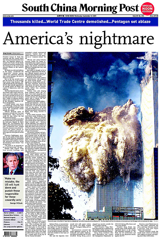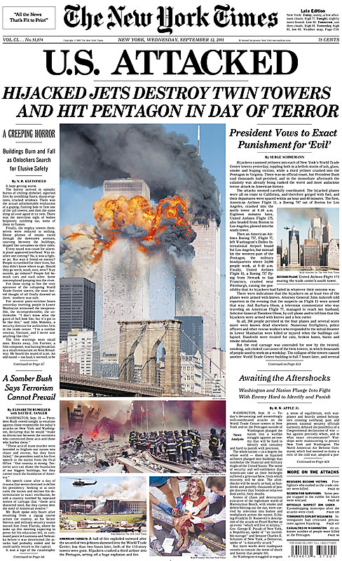 El diario neoyorquino titula: "Estados Unidos atacado" y publica varias imágenes del 11-S.