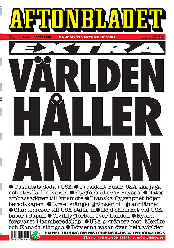 Portada del diario sueco en el que destaca el ataque a Estados Unidos.