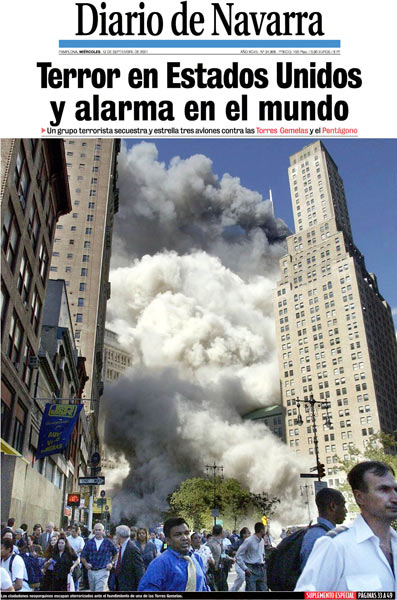 El diario navarro hablaba de "terror en Estados Unidos y alarma en el mundo"