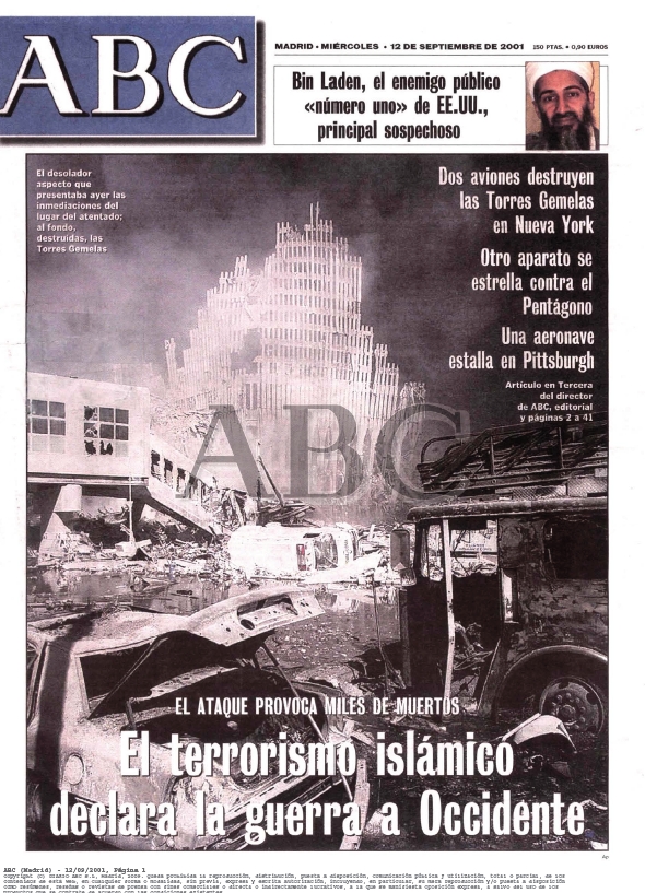 El diario español de Vocento publica una foto que ocupa toda la portada y destaca la guerra declarada a Occidente con el 11-S.