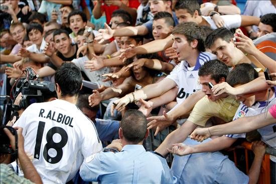 Unas 8.000 personas han acudido al estadio Santiago Bernabéu para asistir a la presentación del defensa Raúl Albiol como jugador del Real Madrid.