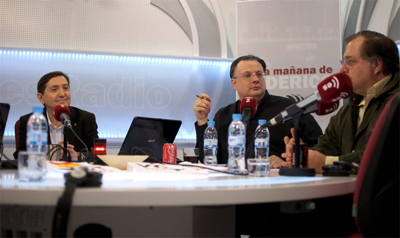 César Vidal, Federico y Luis Herrero en un momento del programa. LD / David Alonso.