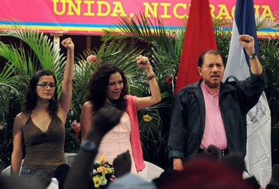 El dirigente nicaragüense no ha perdido el hábito de levantar el puño.