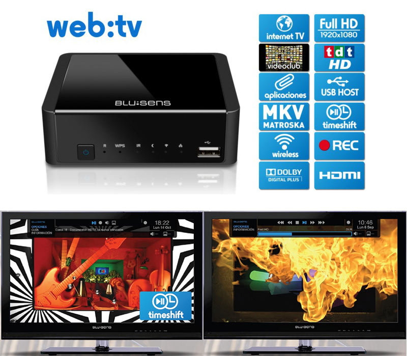 Blusens Web:TV lleva internet a tu tele en alta definición. Además, es sintonizador TDT e incluye un videoclub online de la marca. Precio: 159 €
