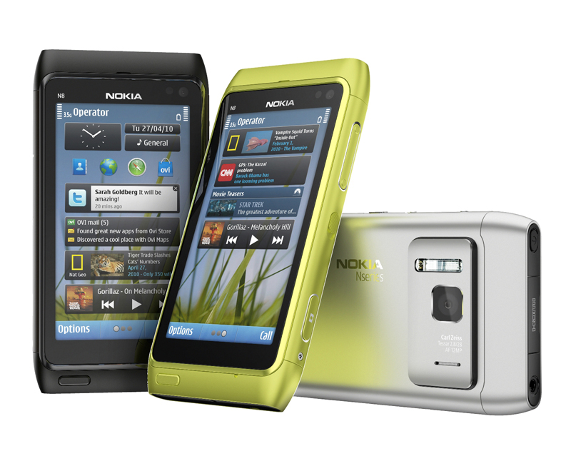 Cámara de 12 megapíxeles, videocámara HD, GPS, televisión online y sonido Dolby Digital en un solo teléfono, el N8, con Symbian como sistema operativo.