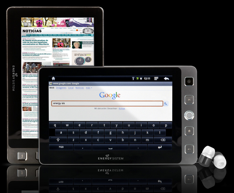 Otra tableta con Android, WiFi, 3G y pantalla táctil. Además, reproduce una gran cantidad de archivos de vídeo en calidad HD que puedes almacenar en sus 4 GB de memoria, es la Energy Tablet i504 ampliable con tarjetas MicroSDHC. Precio: 199 €