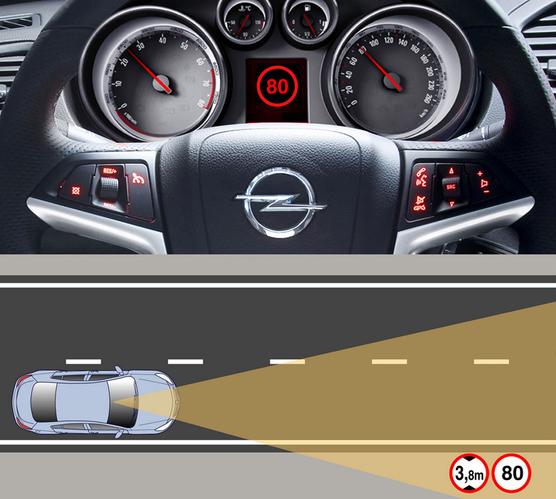 El Opel Insignia es capaz de interpretar las señales de la vía. Algunas firmas de tecnología, como Siemens, permiten también que el coche reduzca automáticamente su velocidad en función de la limitación.