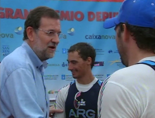 En la imagen, Mariano Rajoy saluda a los deportistas que participaron en la regata. (LDTV)