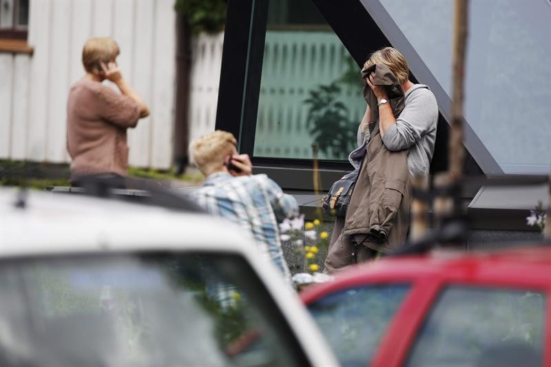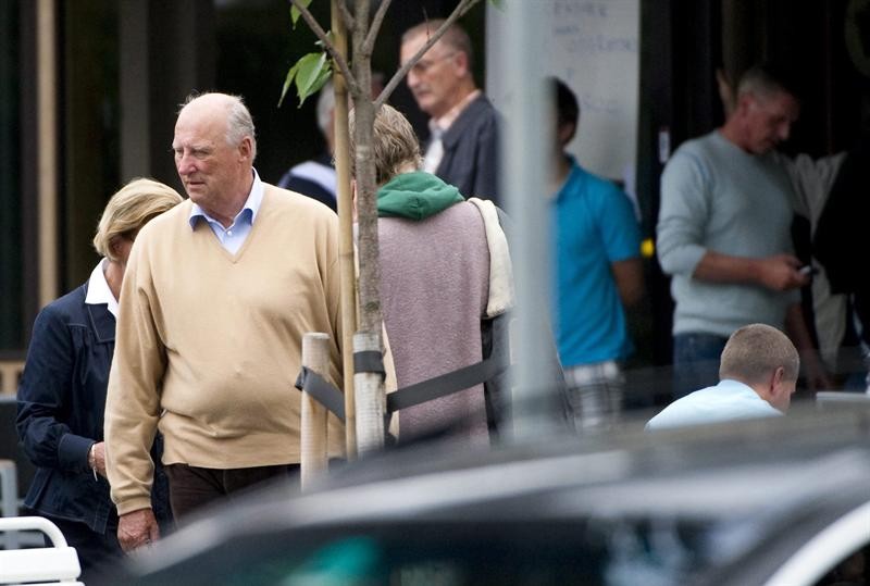 La reina Sonja (i) y el rey Harald IV de Noruega (d), a su llegada para saludar a los familiares de las víctimas del tiroteo sucedido. Efe