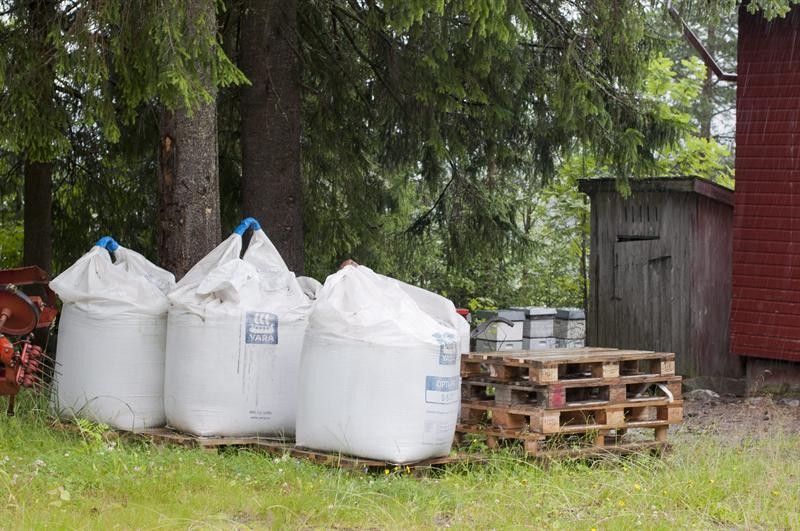 Sacos con fertilizante en una granja de Asta, al este de Hedemark, Noruega, propiedad de Anders Behring Breivik, autor de los dos atentados que han costado la vida en el país a al menos 91 personas.