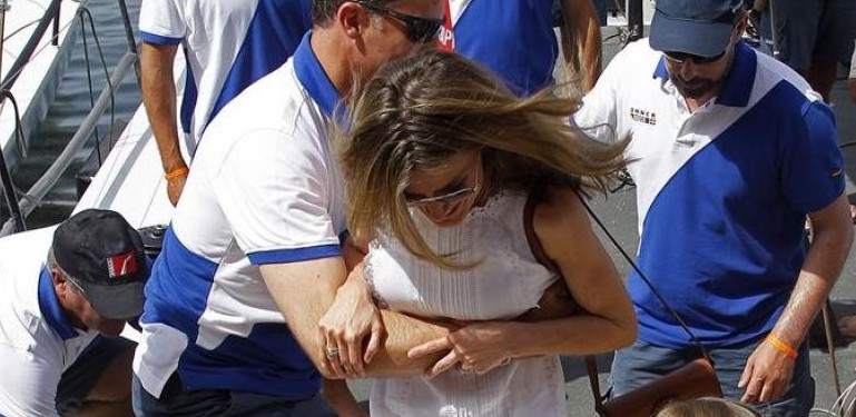 Letizia llegón un día tarde con sus hijas y a punto estuvo de caerse de no ser por los reflejos del Príncipe Felipe al sujetarla.