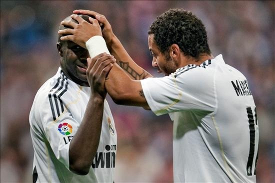 Marcelo agarra la cabeza de Lass Diarra. EFE