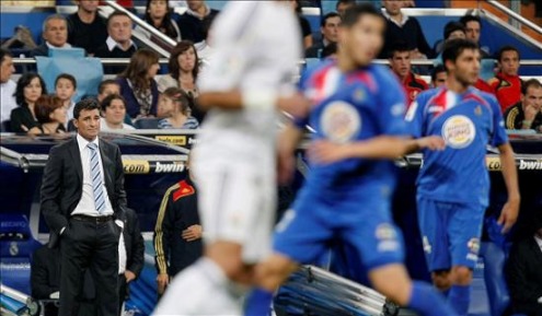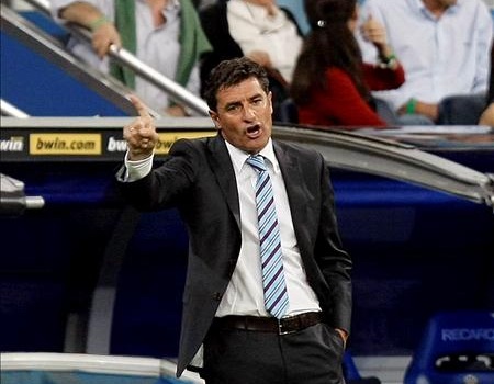 Míchel observa con atención los movimientos de sus jugadores. EFE