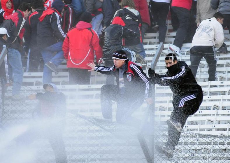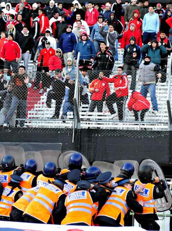 Los radicales de River lanzaron piedras y otros objetos contundentes a los policías que se encontraban en el estadio Monumental.
